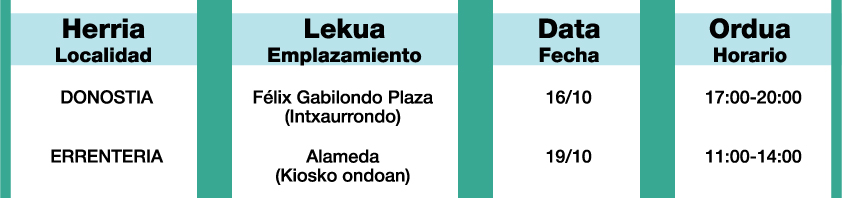 Los lugares, fechas y horarios previstos para estos stands son: